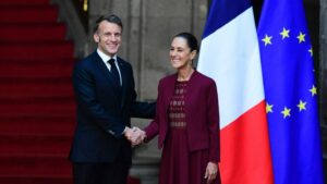 Claudia Sheinbaum y Emmanuel Macron sostienen reunión en Palacio Nacional