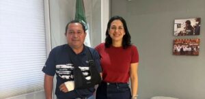 Entrega Estefanía Mercado herramientas a personal de Zofemat para limpieza de playas