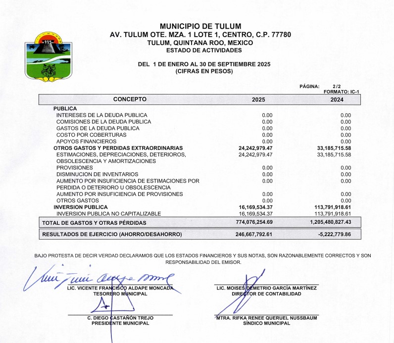 No solamente es un tema de derecho a las y los ciudadanos, hablamos de un tema de profunda responsabilidad. Y por esa razón manifiesto que no suscribiré la cuenta pública en los términos en que se presenta y me deslindo de cualquier responsabilidad derivada de su aprobación. Porque Tulum merece cuentas claras y no simulación. Y la gente, sobre todo, merece la verdad absoluta. Es momento”, afirmó la síndica municipal.