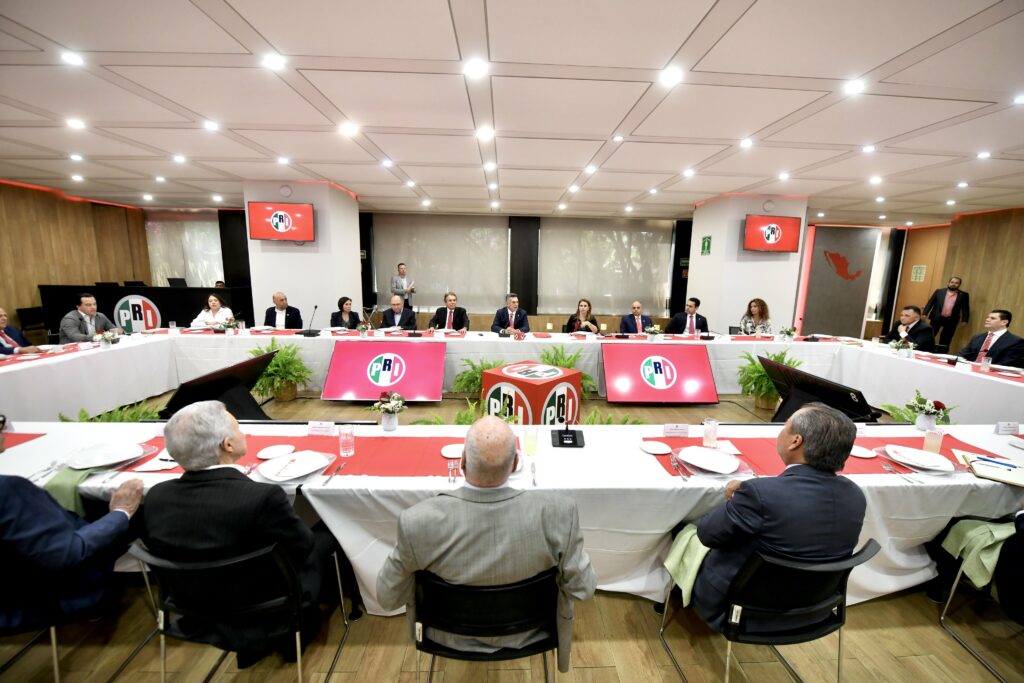 El encuentro se realizó en la sede nacional del tricolor en formato de diálogo abierto, con la participación de la secretaria general Carolina Viggiano, así como de los coordinadores parlamentarios Rubén Moreira y Manuel Añorve, además de integrantes del Comité Ejecutivo Nacional.