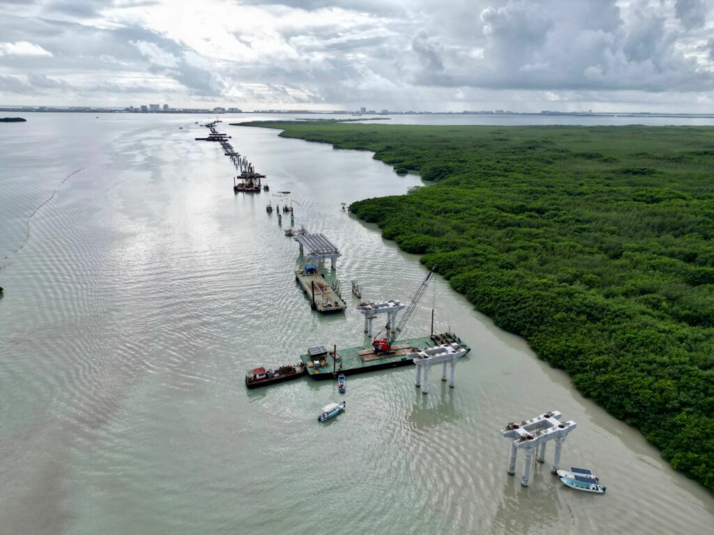 “En cuanto a su conclusión, la intención es que termine el año que viene y esperamos la fecha definida de la misma”, afirmó, en reconocimiento de que no se cumplirá la meta de inaugurar el puente sobre la laguna Nichupté antes de la Navidad de este 2025.