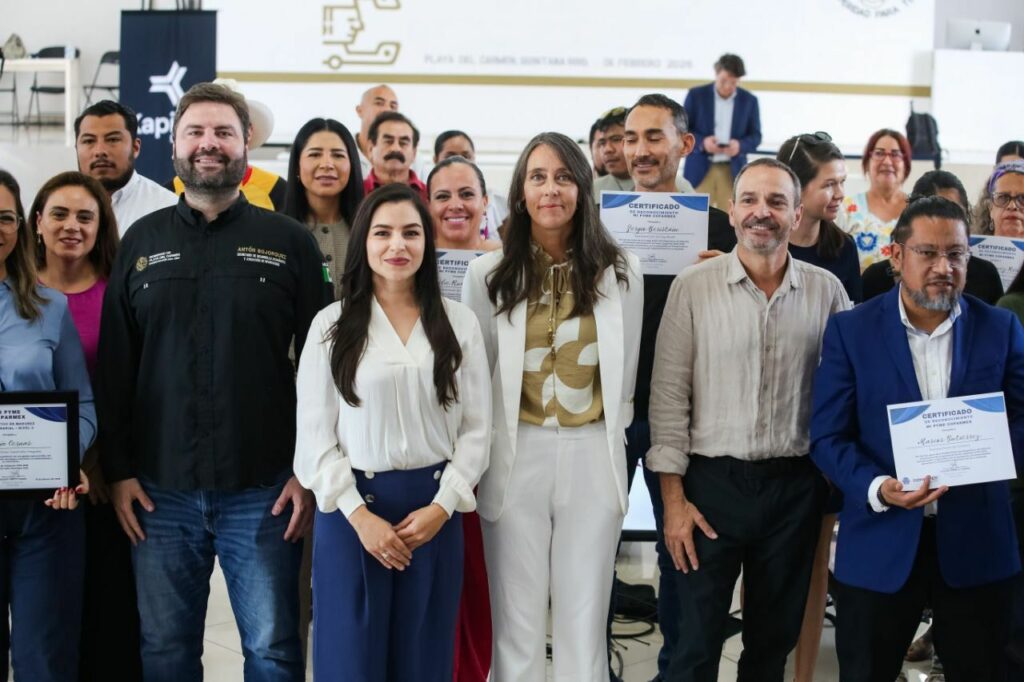 Durante el acto protocolario se contó con la presencia del secretario de Desarrollo Económico del Estado, Paul Carrillo de Cáceres; la presidenta de Coparmex Riviera Maya, Sugey Prieto Torres; el secretario de Desarrollo Económico y de Atracción de Inversiones de Playa del Carmen, Antón Bojórquez, y la coordinadora del programa Mi Pyme Coparmex, Estefanía Hellrox.