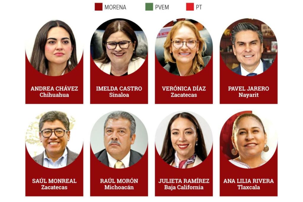 Entre los nombres que suenan en Morena están Nora Ruvalcaba, Julieta Ramírez, Armando Ayala, Beatriz Mojica, Reyna Celeste Ascencio, Raúl Morón, Pavel Jarero, Eugenio “Gino” Segura Vázquez, Imelda Castro, Lorenia Samperio, Heriberto Aguilar, Ana Lilia Rivera, Verónica Díaz y Saúl Monreal.
