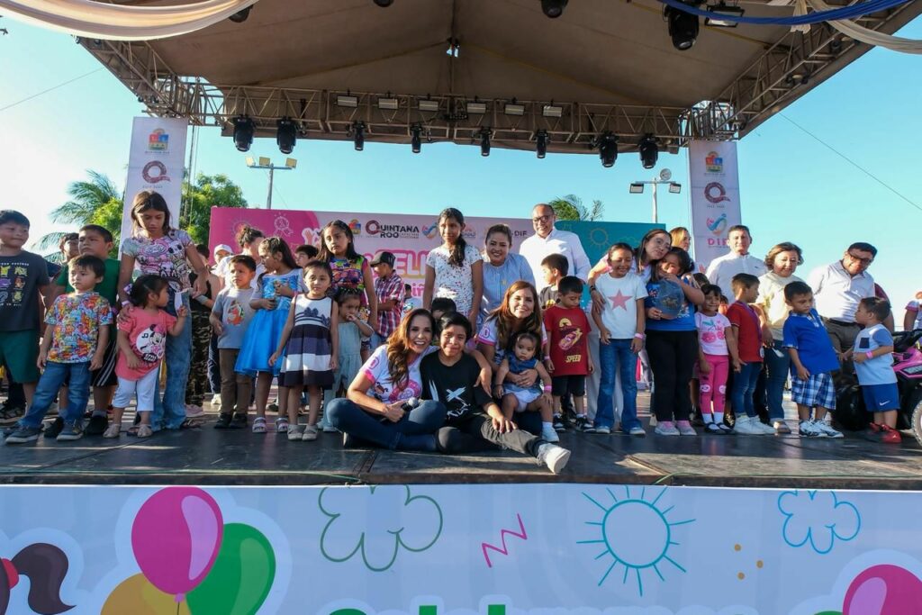 CHETUMAL.- Con un ambiente festivo y la asistencia de más de 5 mil personas, la gobernadora de Quintana Roo, Mara Lezama Espinosa, encabezó la celebración del Día de la Niña y el Niño en Chetumal, acompañada por la presidenta honoraria del DIF estatal, Verónica Lezama Espinosa, y la alcaldesa Yensunni Martínez Hernández.