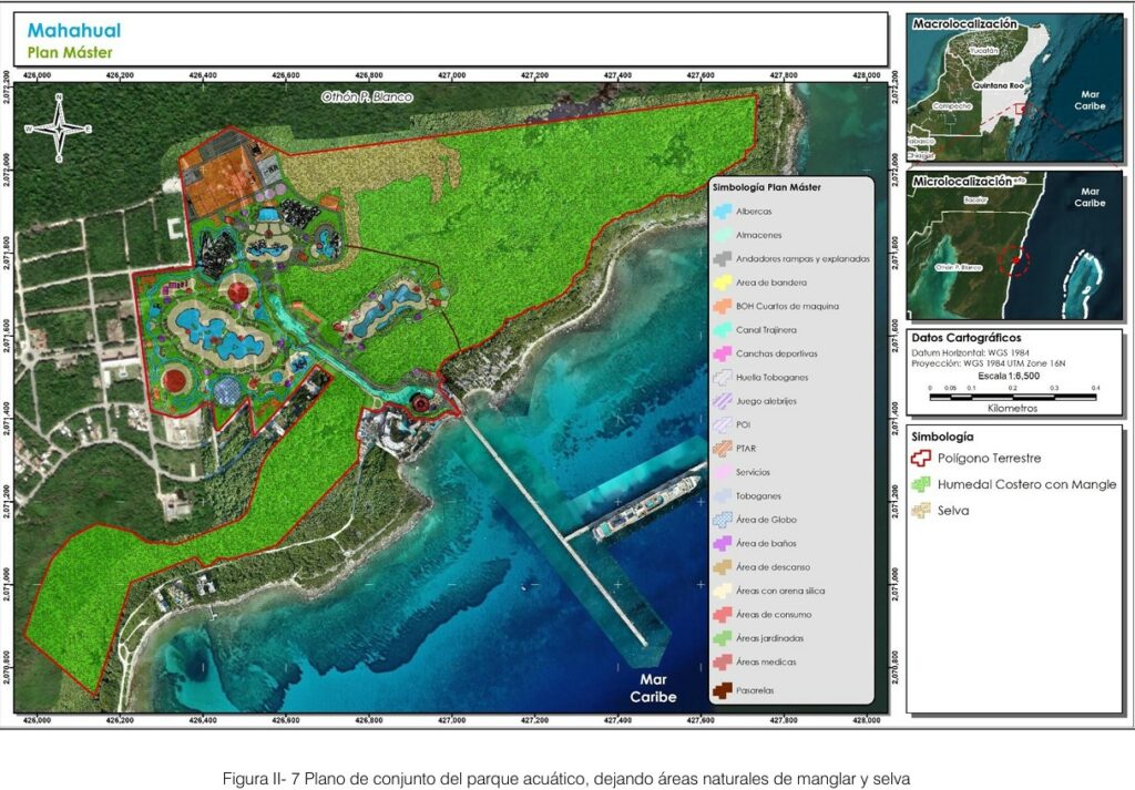 Según el proyecto, la infraestructura turística del parque acuático irá acompañada de restaurantes e instalaciones de comercios y servicios, con capacidad para recibir a 21 mil turistas de cruceros al día y albergar a 2 mil 500 colaboradores, por lo que solicita también la autorización para operarla durante 97 años.