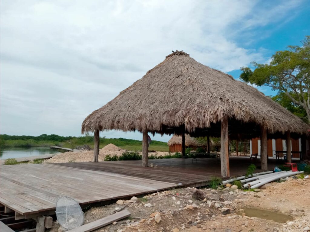 El terreno, ubicado detrás del antiguo campamento de la Secretaría de Infraestructura, Comunicaciones y Transportes (SICT), muestra un avance notorio de las construcciones. Palapas, un andador de madera y zonas rellenadas con sascab —que afectan directamente los humedales— ahora lucen cubiertas con pasto recién sembrado, en lo que pobladores describen como un intento por “disfrazar” las modificaciones ilegales al ecosistema.