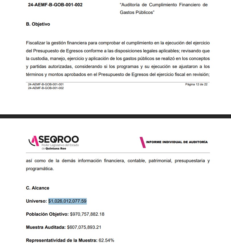 Pero a lo largo de ese año, el Poder Judicial tuvo ampliaciones presupuestales que al final le dieron ingresos por 1 mil 65 millones 560 mil pesos, de los cuales se gastó casi la totalidad, mil 26 millones 12 mil pesos, lo cual consta en el Informe Individual de Auditoría Financiera del ejercicio fiscal 2024 publicado por la Auditoría Superior de Quintana Roo (Aseqroo).