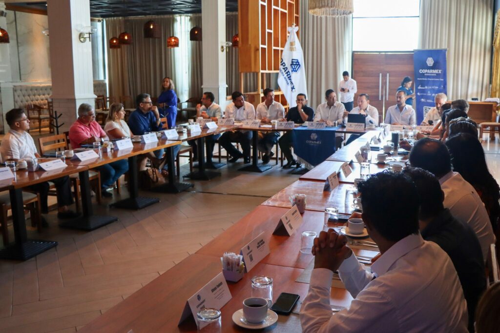 PLAYA DEL CARMEN.- En representación de la presidenta municipal Estefanía Mercado, el secretario de Seguridad Ciudadana de Playa del Carmen, Carlos Montesinos García, participó en la Reunión de Socios de la Coparmex Riviera Maya, que dirige Sugeiry Prieto Torres, donde expuso los avances alcanzados en materia de seguridad, coordinación institucional y vinculación con el sector empresarial.