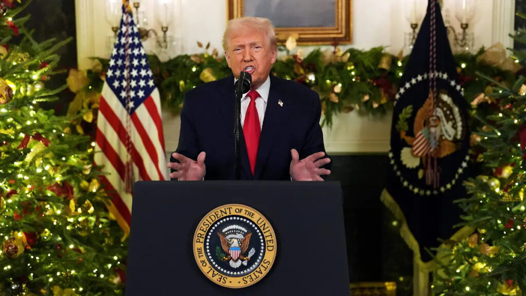 En su alocución desde la Casa Blanca, acusó que las administraciones anteriores “inundaron” ciudades y pueblos con inmigrantes indocumentados, destruyeron los ahorros de las familias trabajadoras y promovieron el adoctrinamiento de niños con odio hacia Estados Unidos, al tiempo que sostuvo que se liberaron niveles de delincuentes violentos nunca antes vistos para depredar a la población y provocar una situación “horrible” en el mundo.